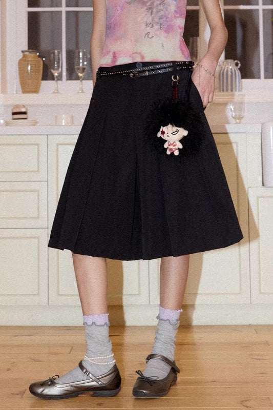Gray-Green Plaid Pleated Skirt