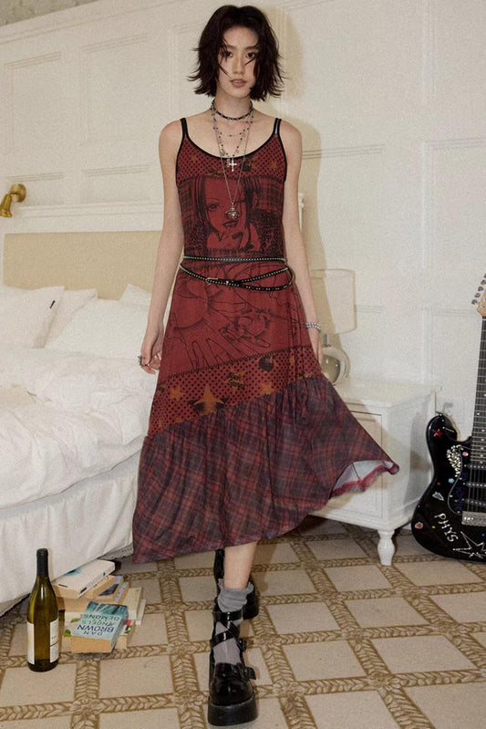 Red Printed Strap Dress
