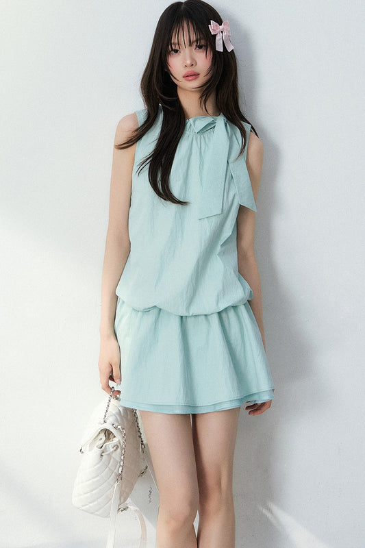 Patchwork Plaid Embroidered Top & Skirt Set-Up