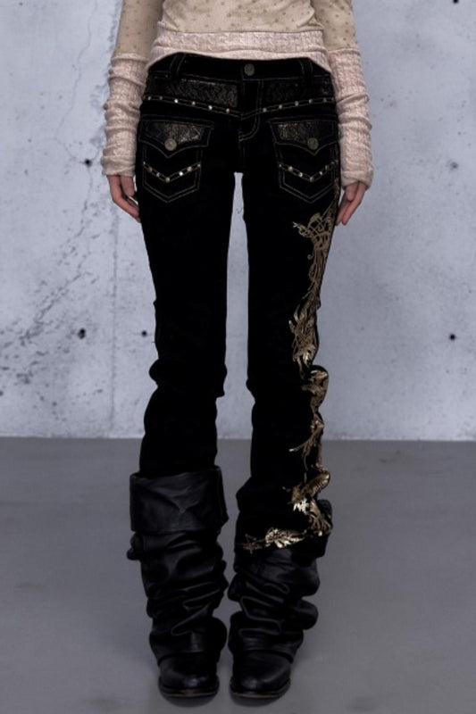 Retro Gold Foil Denim Pants