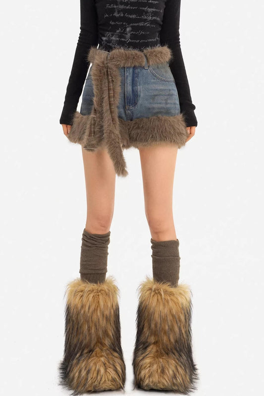 Checkered Removable Hair Collar Tweed Jacket Halter Set