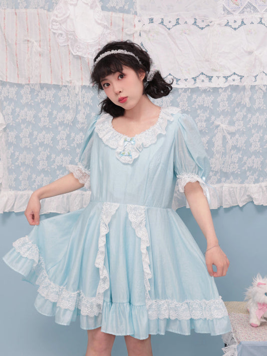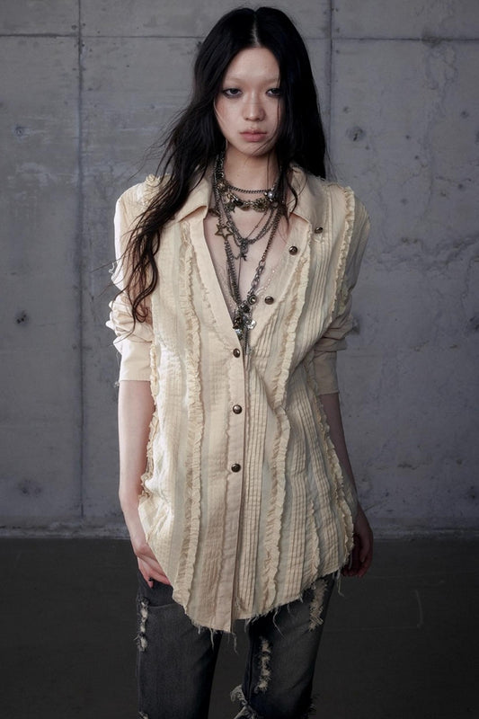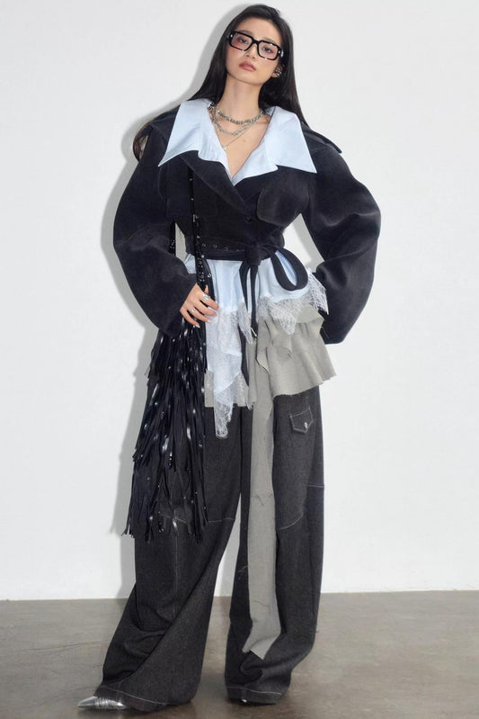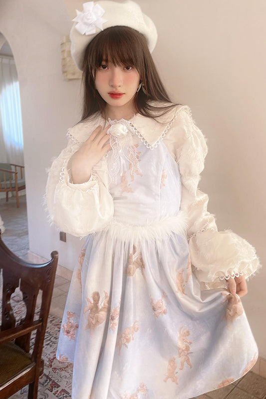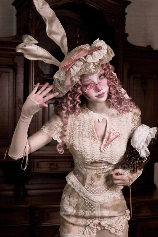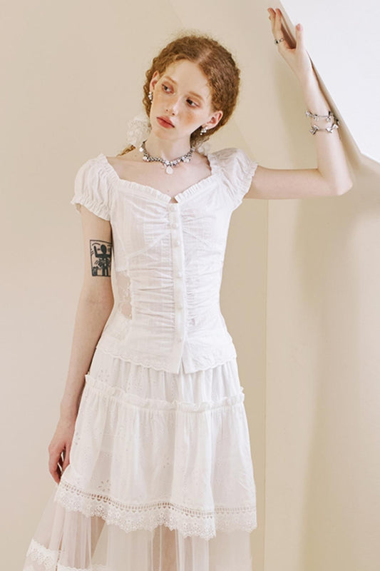 Vintage Lace V-Neck Bubble Sleeve Shirt