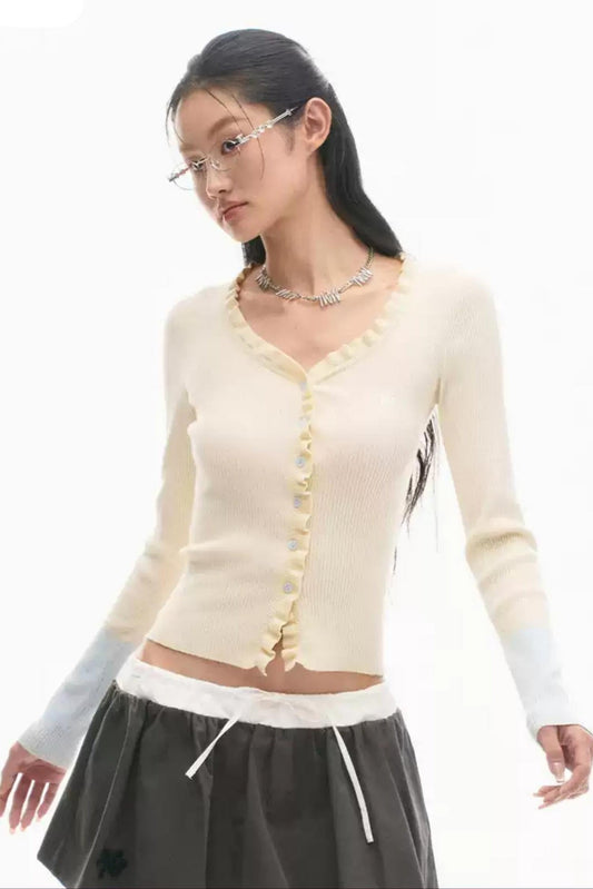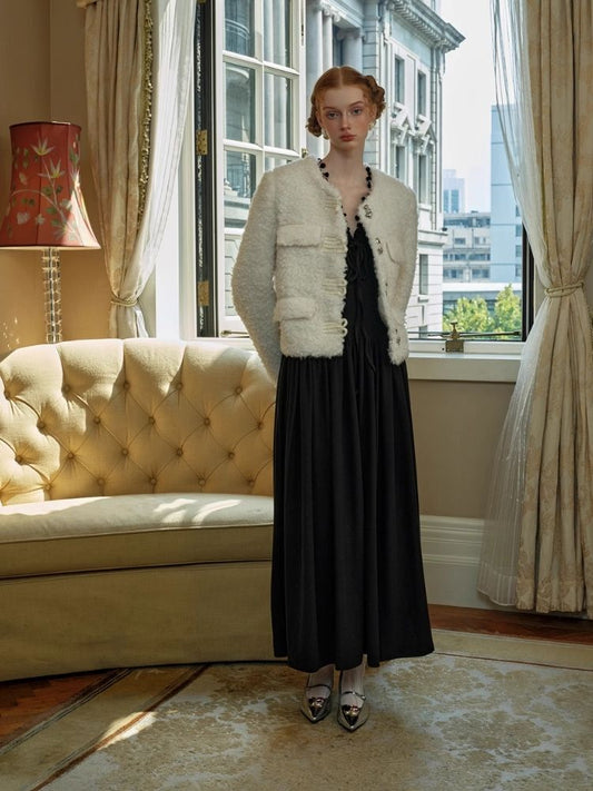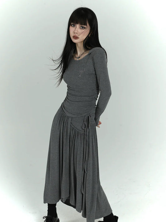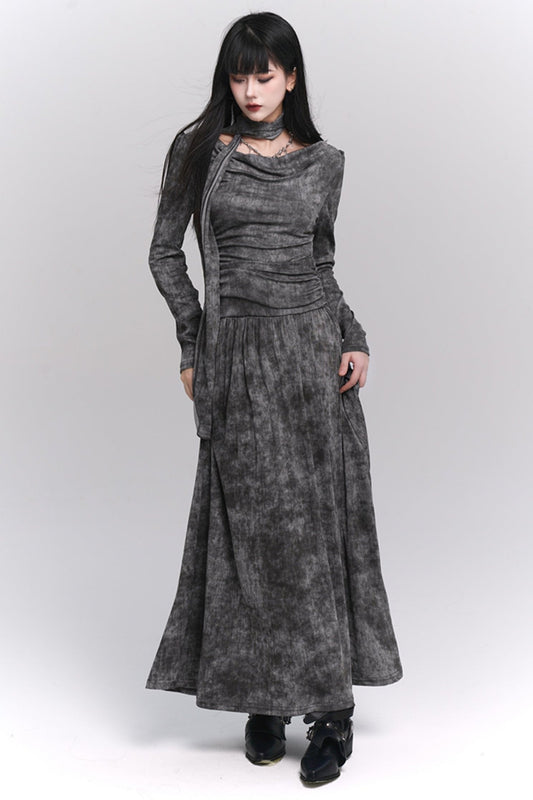 Wave Ball v-Neck Long Sleeve Knit Dress
