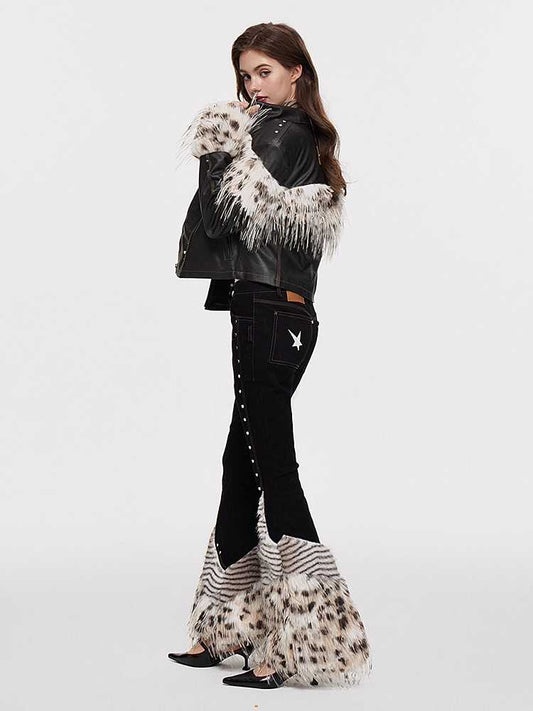 Checkered Removable Hair Collar Tweed Jacket Halter Set