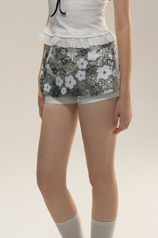 Flowers Sequin Short Skirt