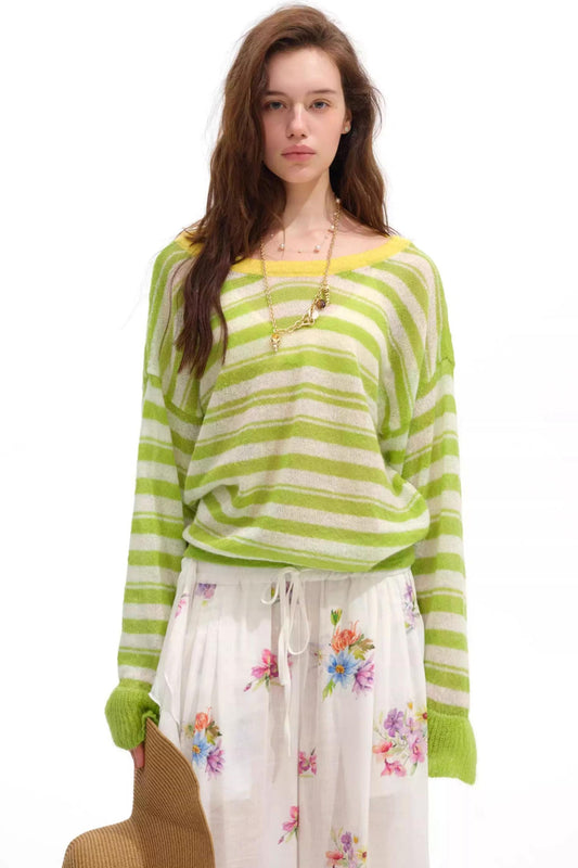 Ice Blue Striped Mohair Top