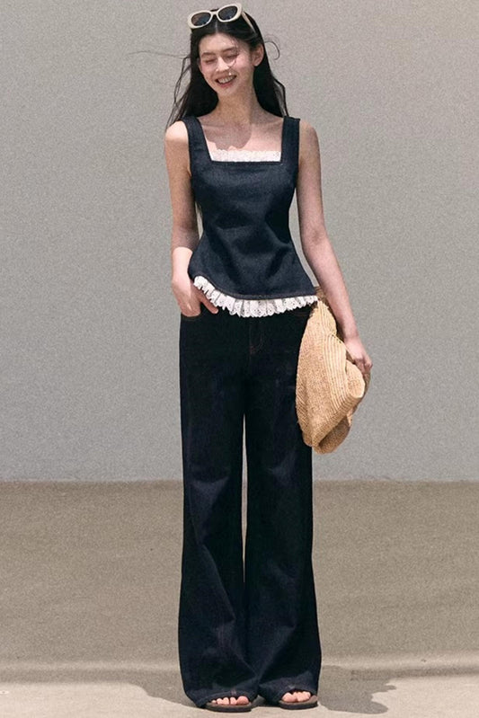 Split Curved Hem Denim Pants