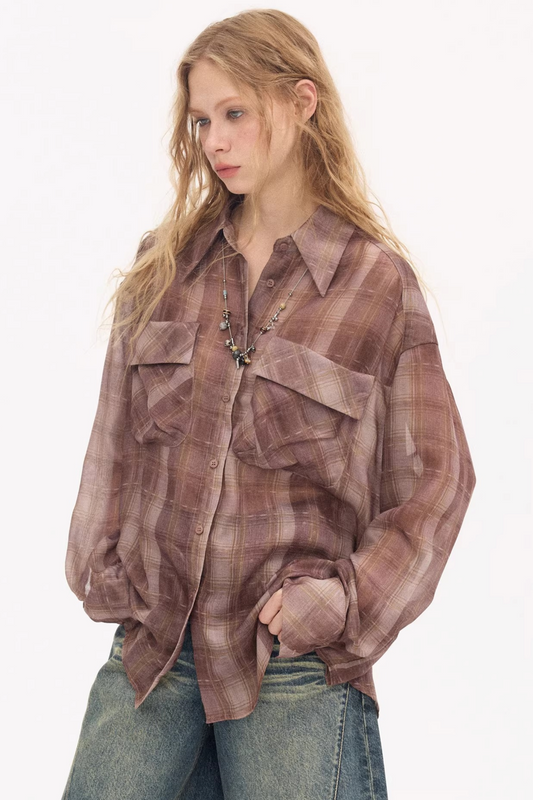 Plaid Lantern Sleeve Blouse