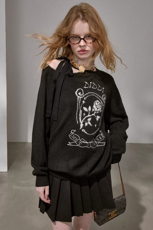 Lace-Up Collar Sweater Set-Up