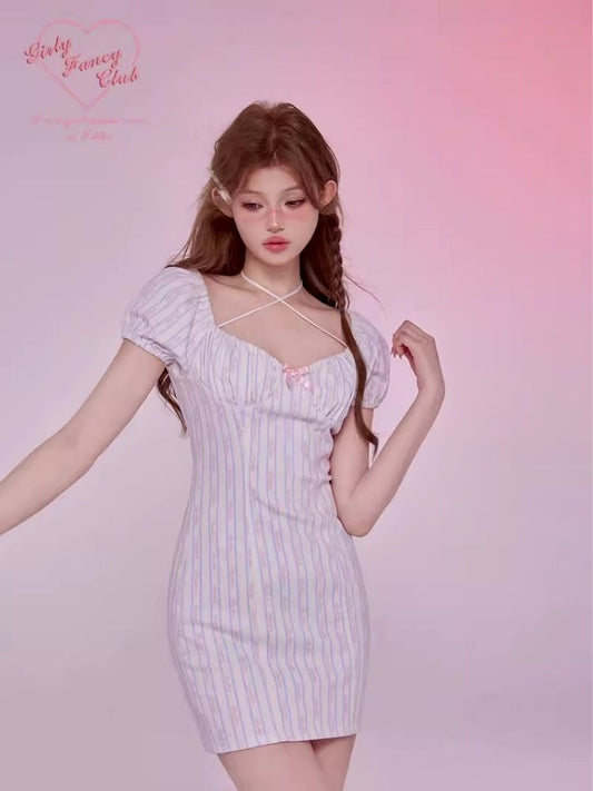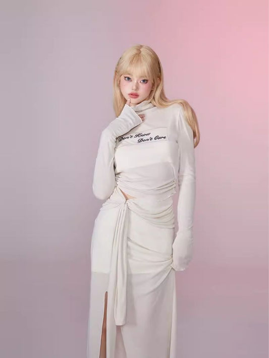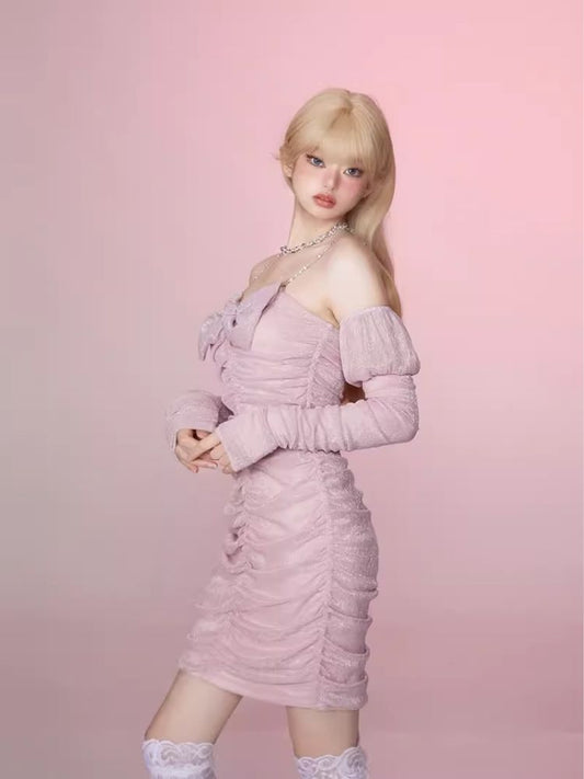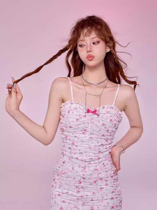 Pleated Slim Hip Skirt Chain Halter Dress