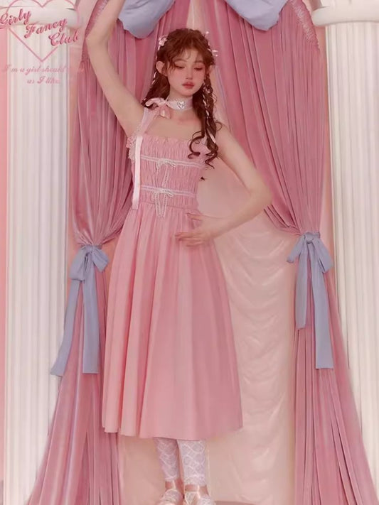 Shrunken Bow Sleeveless Hem Long Pink Halter Dresses
