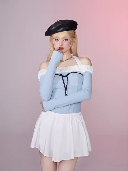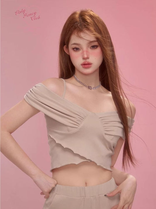 One Shoulder Slim Hanging Neck Top