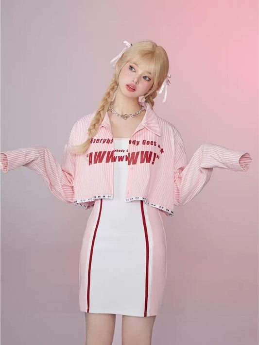 Long and Short Organ Button Striped Loose Shirt