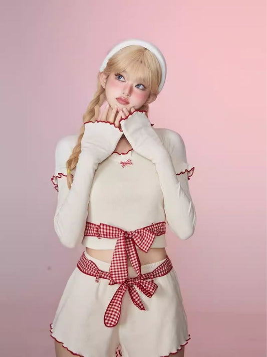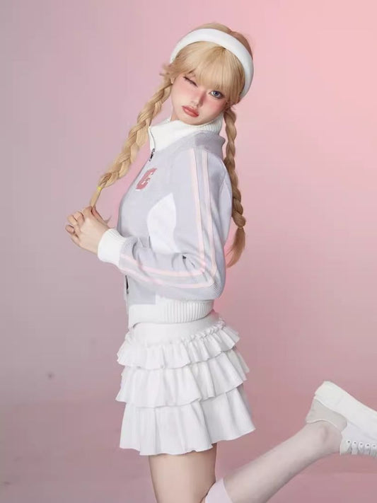 Bow Cardigan Top Half Skirt Set