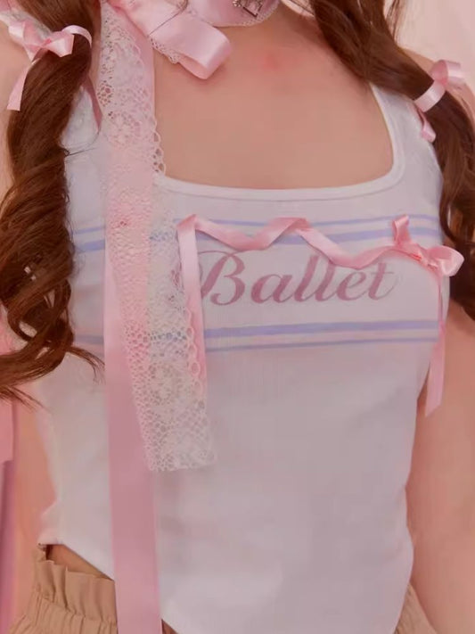 Sweet bow tie round neck tank top