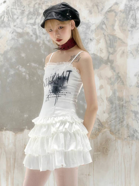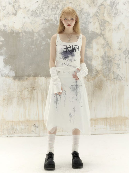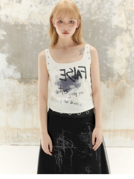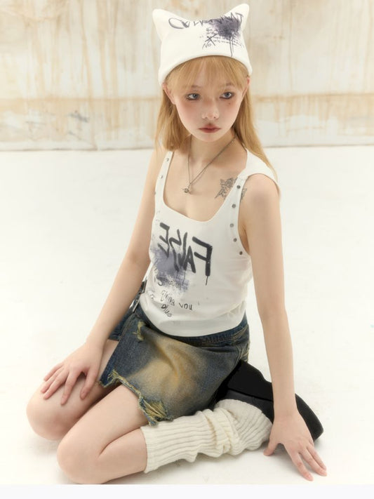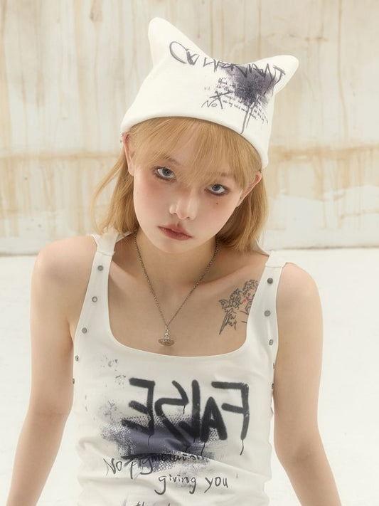 Imp Graffiti Printed Backless Hooded Neck Cami T-Shirt