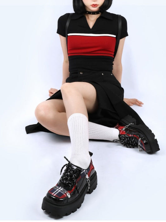 Rock Chain Plaid Platform Shoes