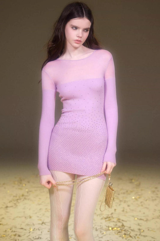 Retro Rhinestone Off-Shoulder Sweater Set-Up