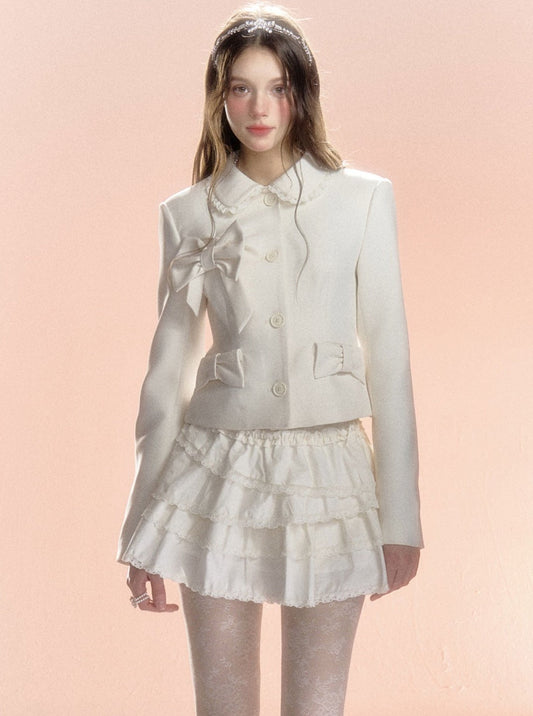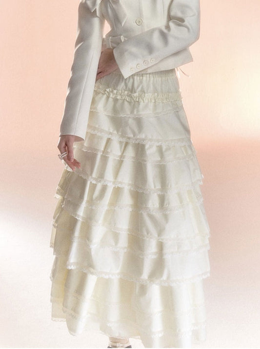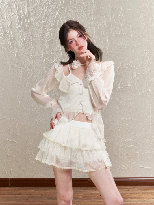 Fragrance Wind Lace Jacket Cake Skirt Set