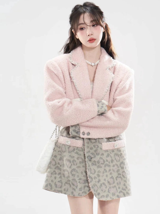 Wool tweed pink blazer Coat