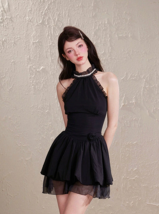 Vintage halter Neck Puffy Dress