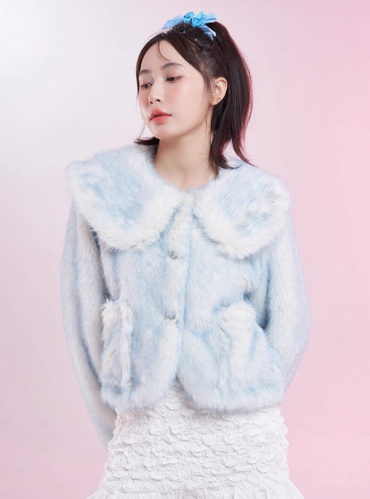 sweet blue fur warm short coat