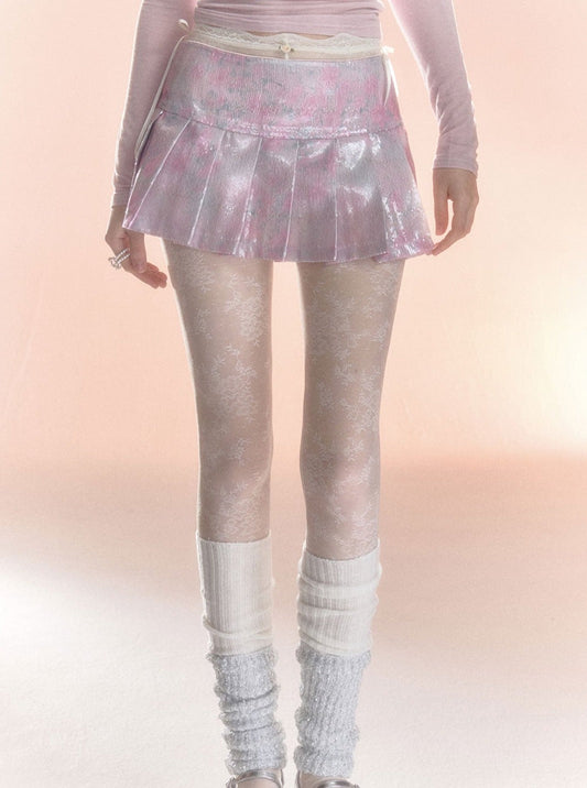 Cutout Lace Base Shirt Pleated Skirt Set