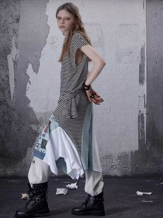 Striped Cropped Deconstructed Dual Purpose T-Shirt