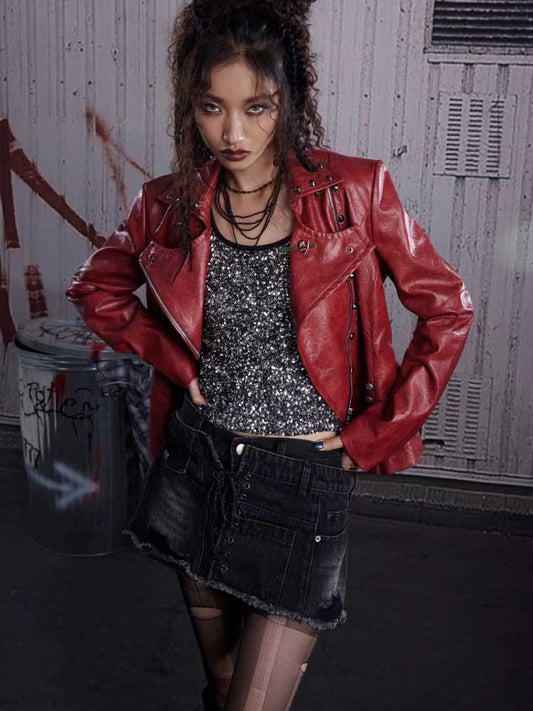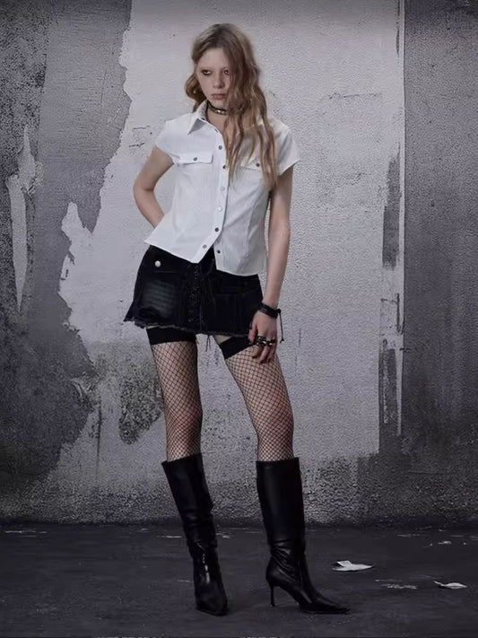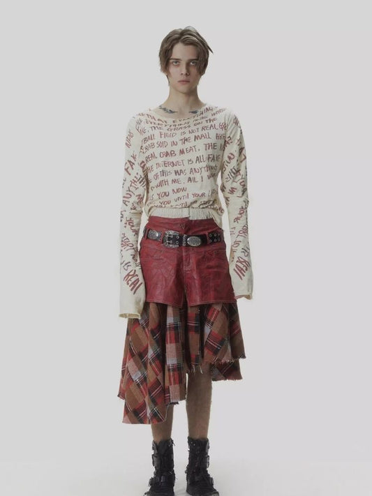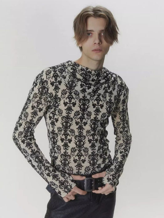 Punk Court Flocking Print Stretch Slim Bottom Sweater