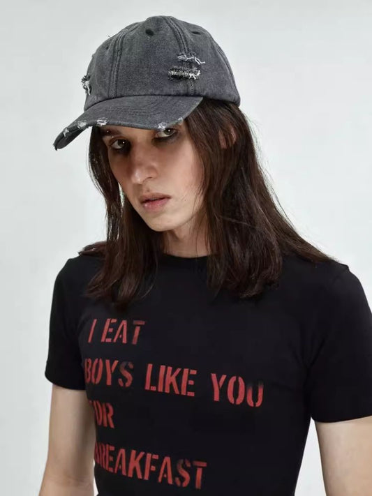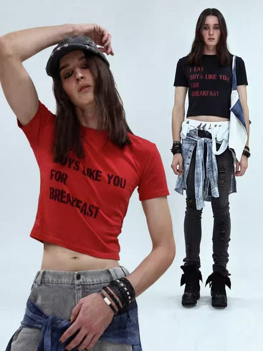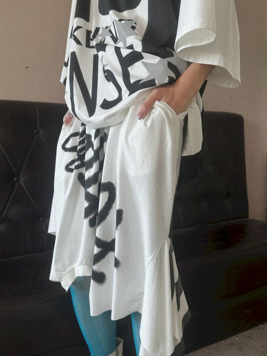 Printed Lettered Waistless Short Sleeve T-Shirt