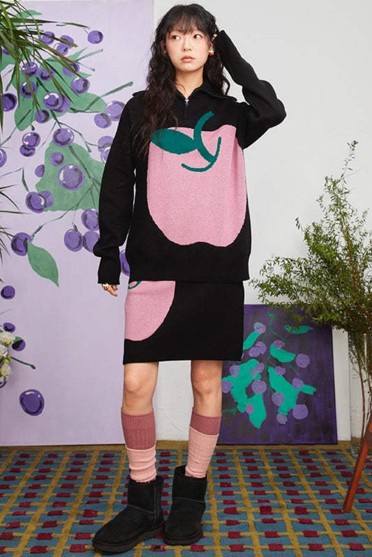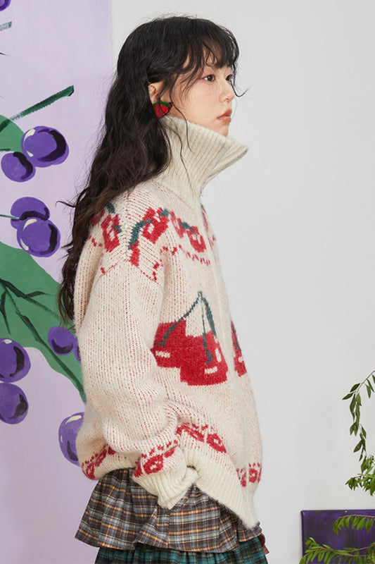 Retro Cherry Jacquard Sweater