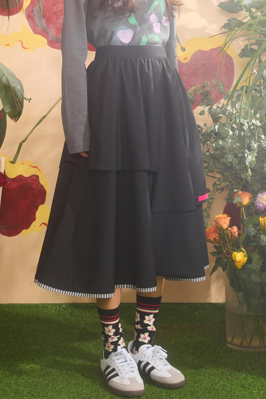 Retro Stripe Asymmetry Skirt