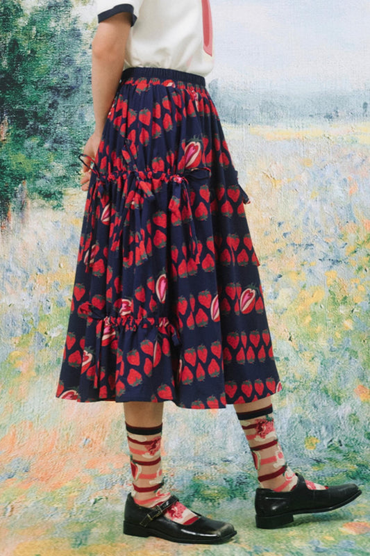 Retro Strawberry Midi Skirt
