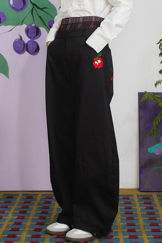 Retro Cherry Blossom Embroidered Pants