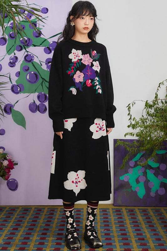 Retro Jacquard Knit Pullover Set-Up