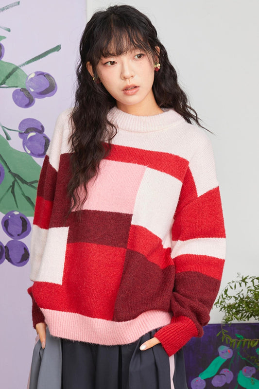 Pink Block Knit Sweater