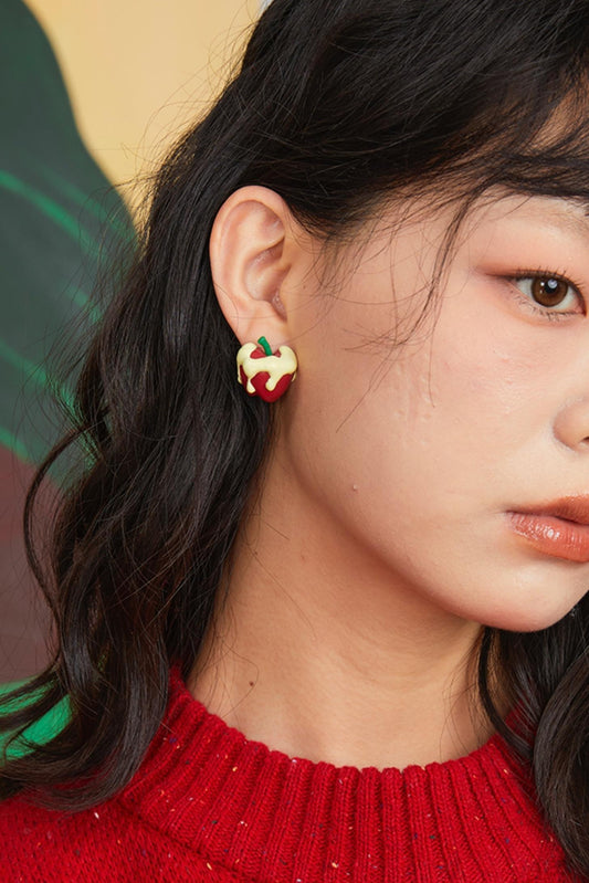 Silver Clip Apple Resin Earrings
