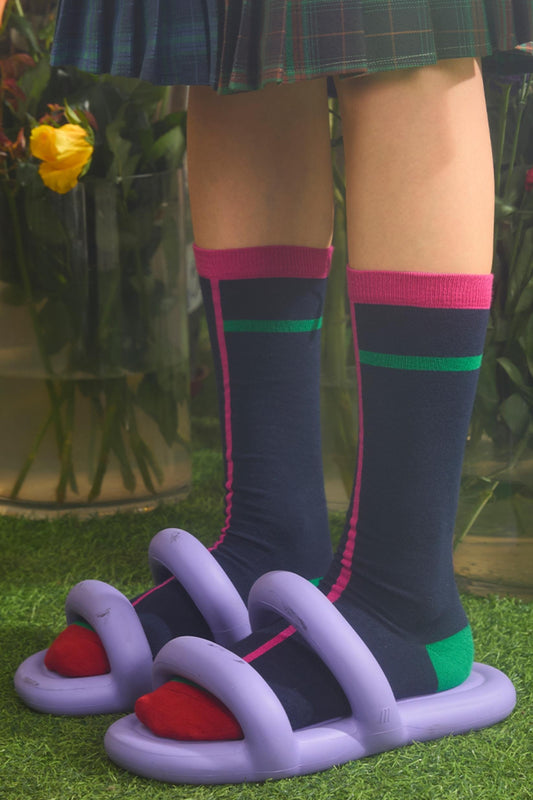 Navy Striped Mid-Calf Socks