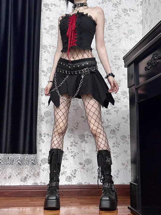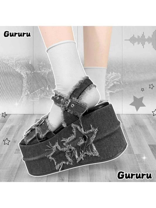 Y2K Punk Star Denim Eyelet Belt Super Thick Sole Sandals