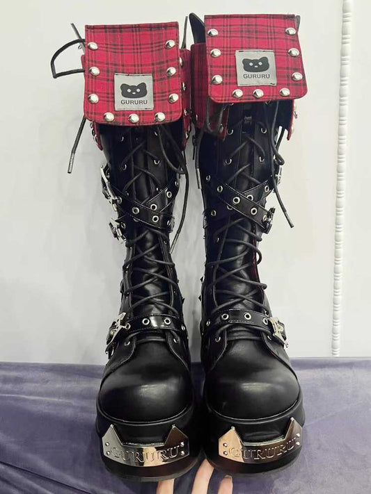 Y2K Black Rabbit Plaid Platform Shoes
