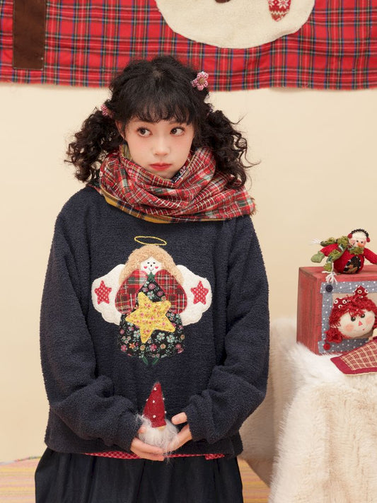Girly Cherub Appliqued Plush Tibetan Blue Sweater