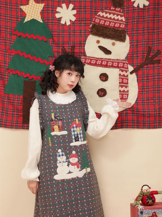 Dot Wool Tweed Gray Christmas Vest Dress