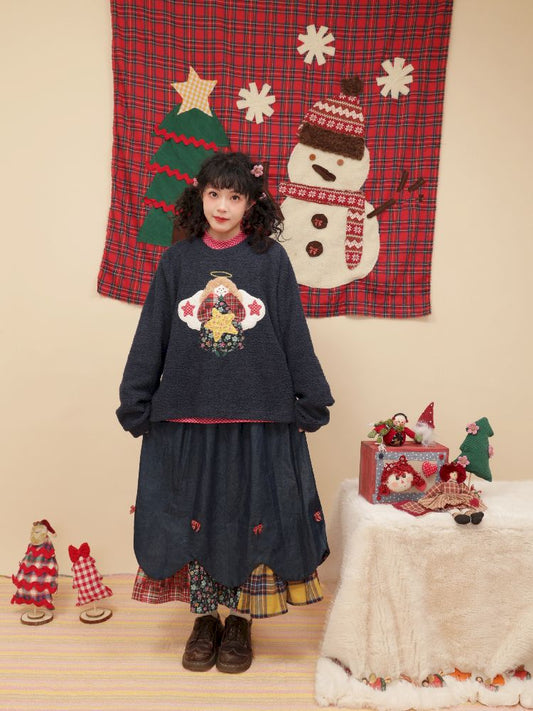 Christmas Tree Appliqued Denim Vest Skirt