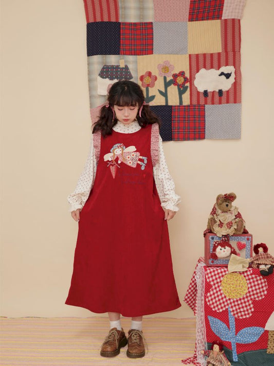 Lace Corduroy Red Vest Dress