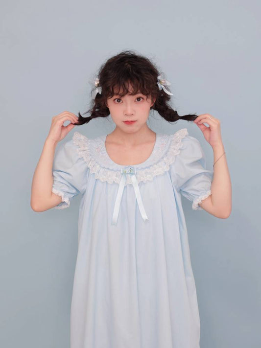 Antique girly floral embroidered light blue dress