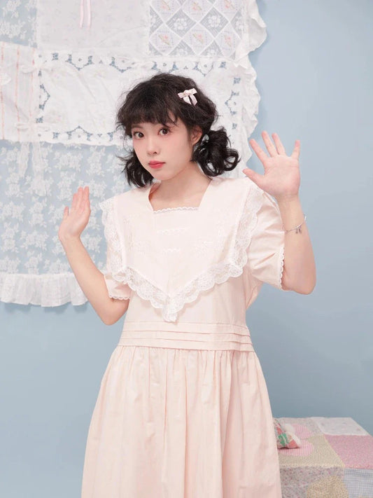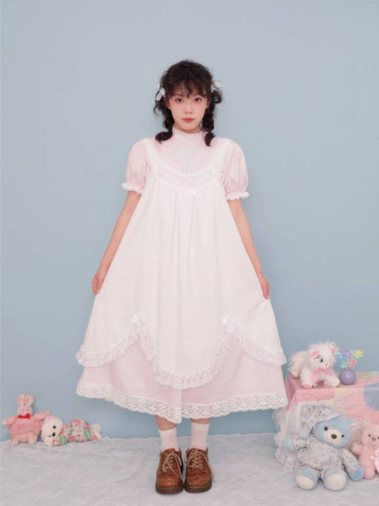 Antique girly pleated embroidery dress