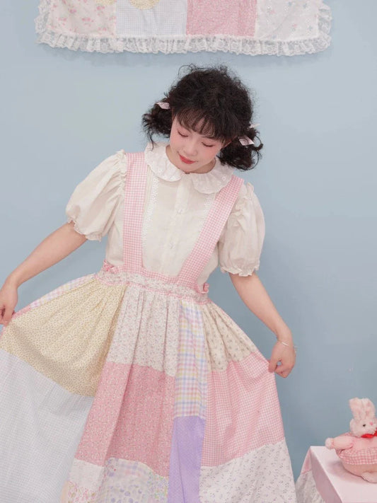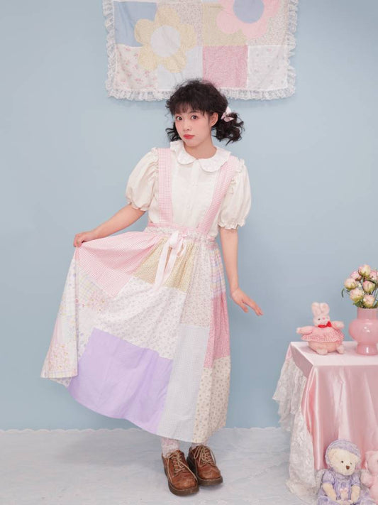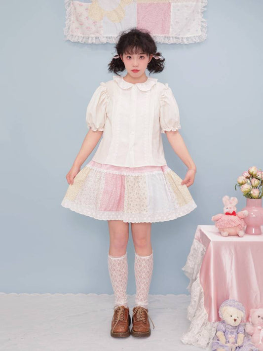 Flower Patchwork Shirt Half Skirt