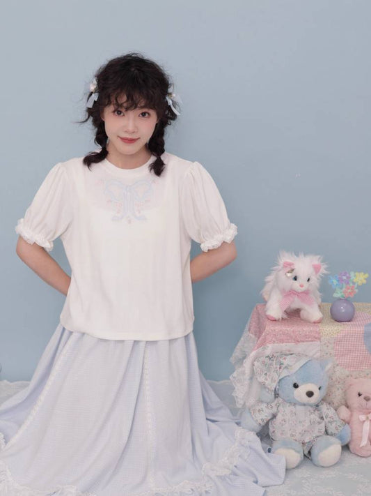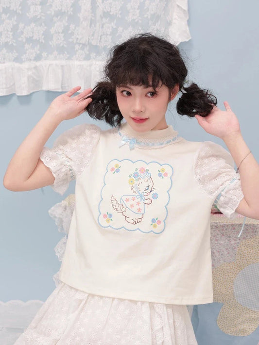 Embroidered puff sleeve T-shirt