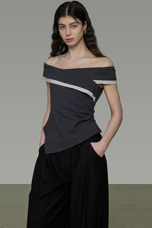 Autumn Slanted Shoulder Knit Slacks Set-Up
