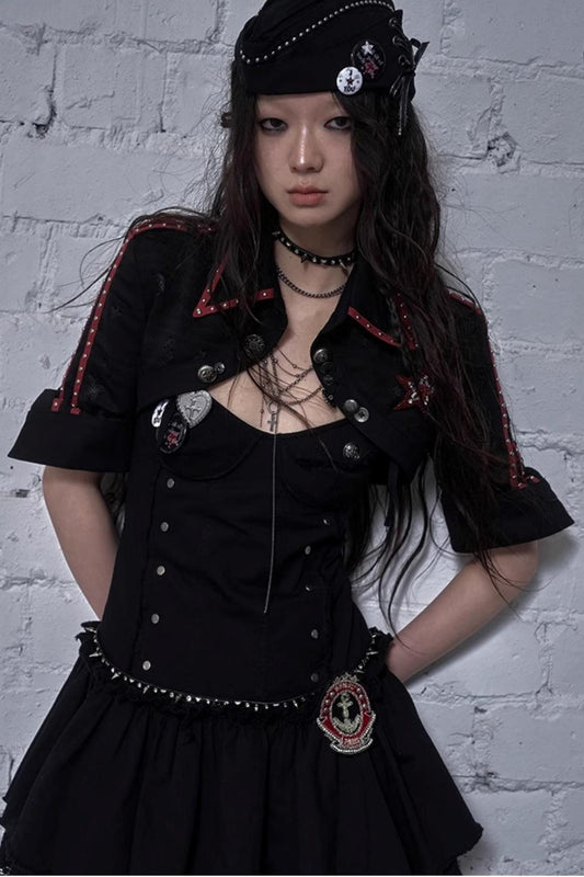 Schwarz Rose Rot Gepunktete Reißverschluss Kurze Jacke